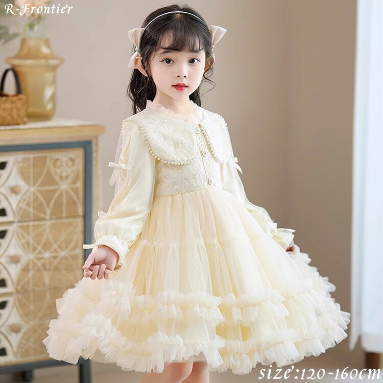 入学式 女の子 子供 入学式 卒業式 発表会 結婚式 受験 女の子 おしゃれ 長袖 ベージュ 令嬢ワンピース 子供服 120 130 140 150 160 170