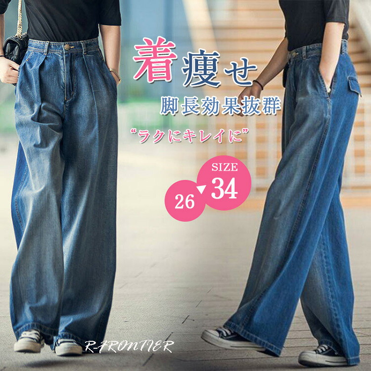 ワイドパンツ レディース デニムパンツ ジーンズ ガウチョパンツ 大きいサイズ ボトムス カジュアル ポケット 着痩せ 夏 春 秋 プレゼント