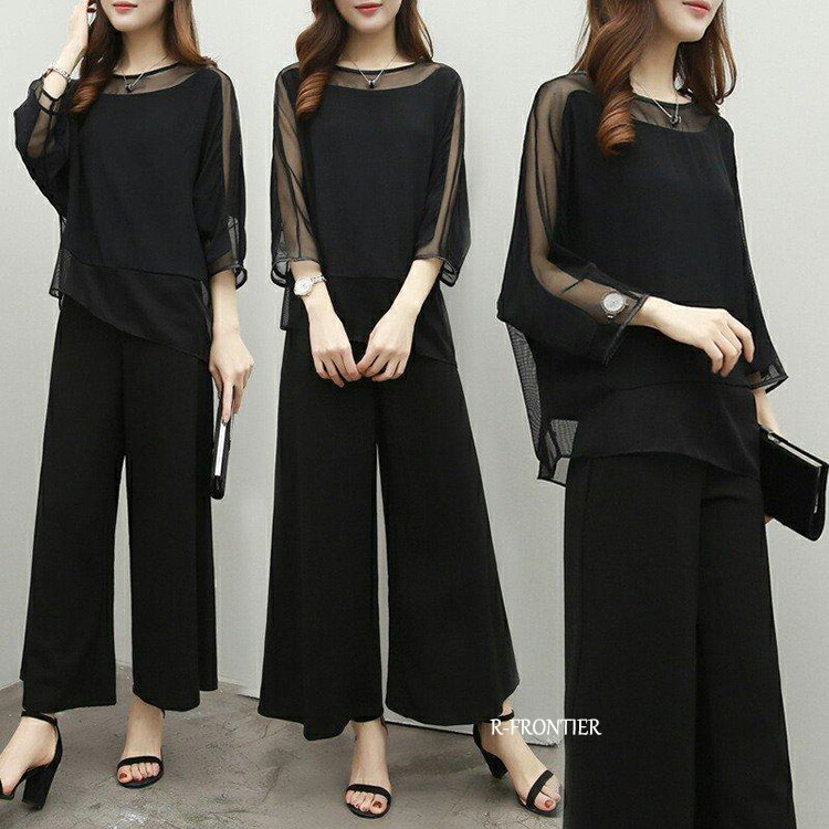 入学式 ママスーツ パンツドレス レディース 制服 ワイドパンツ パーティードレス シースルー シフォン シンプル エレガント 七分袖 結婚式 パーティー 入学式 入園式 卒業式 スーツ