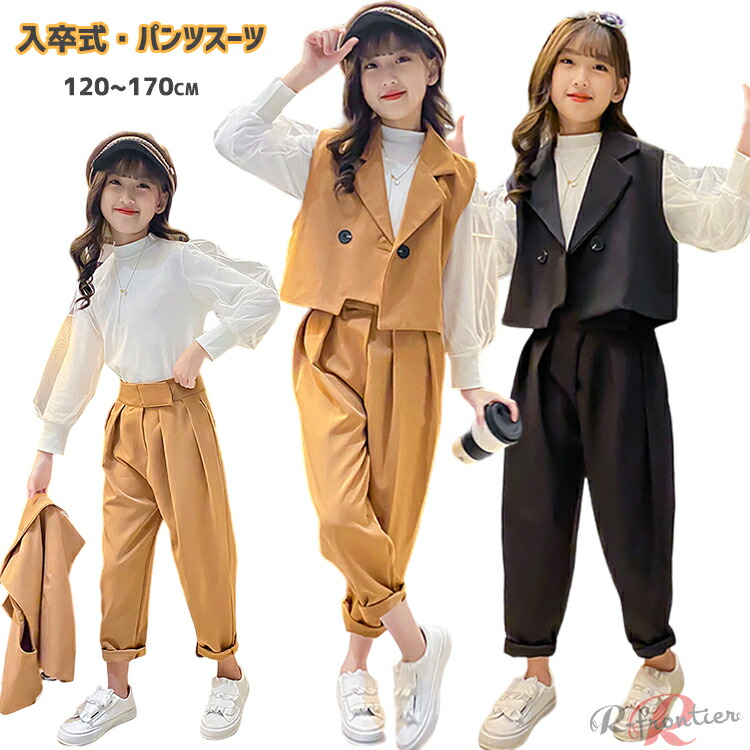 韓国 制服 卒業式 スーツ 女の子 卒服 女の子 韓国 パンツスーツ 子供服 フォーマル スーツ パンツ 女の子スーツ 上下セット 大人っぽい ブラック カーキ 120 130 140 150 160