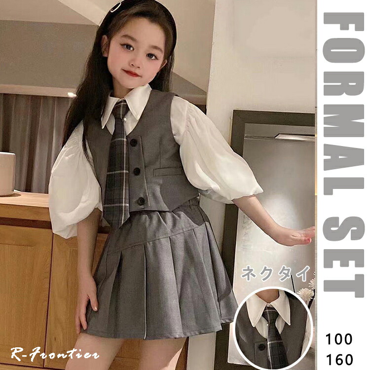ピアノ発表会 フォーマル ブラウス ネクタイ スカート ベスト 子供服 ジュニア 160 150 140 130 120 110 100 発表会 結婚式 演奏会 可愛い 制服 卒業式 スーツ 女の子