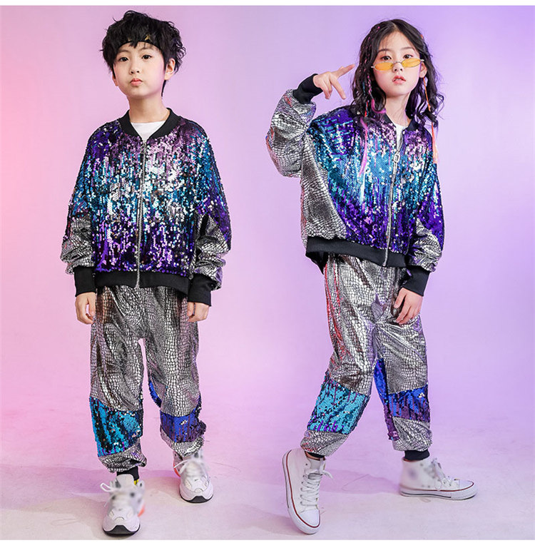 スパンコール ダンス衣装 チアガール 衣装 ヒップホップ 2点セット キッズ ダンス 衣装 ジャケット ジャズ 男の子 女の子 パンツセット ステージ衣装 キラキラ