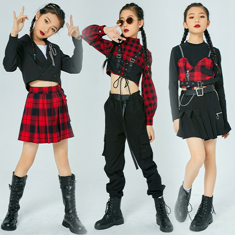 キッズ ダンス衣装 上下セット 舞台 チェック柄 女の子 ダンスチアダンス スカート パンツ ヒップホップ ジュニア ダンス衣装 ファッション ゆるシャツ カジュアル ジュニア おしゃれ