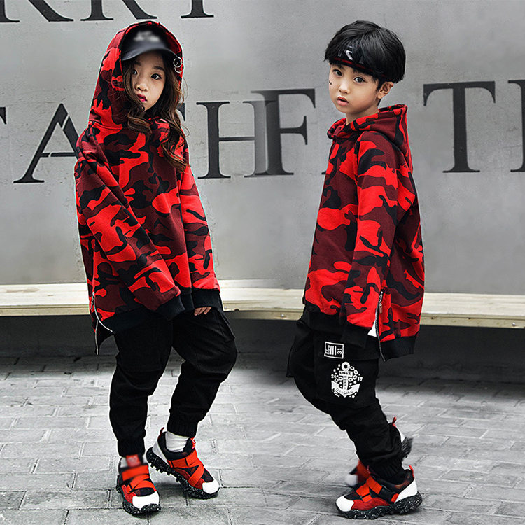 キッズダンス 男の子 女の子 ヒップホップ ダンス衣装 2点セット トレーナー 長パンツ 迷彩 長袖 普段着 ダンスウェア ジュニア 応援団 ジャズ カモフラージュ かっこいい ゆったり