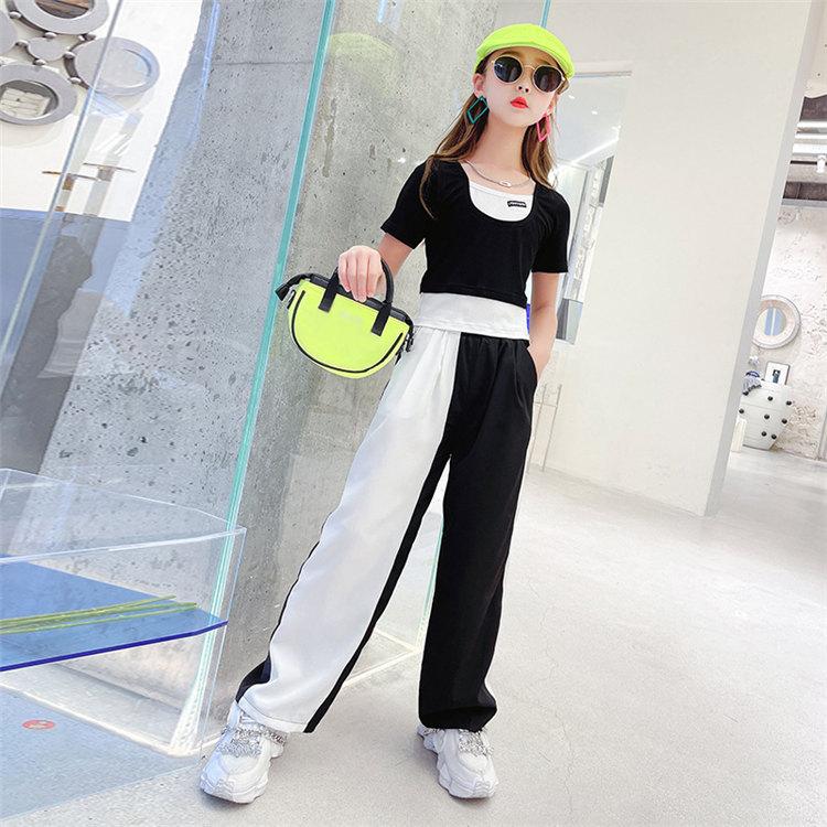 子供服 セットアップ 半袖 ロングパンツ ワイド 2点セット ダンス衣装 ヒップホップ スポーツ 女の子 おしゃれ 可愛い キッズ ガールズ ジュニア ポケット付き