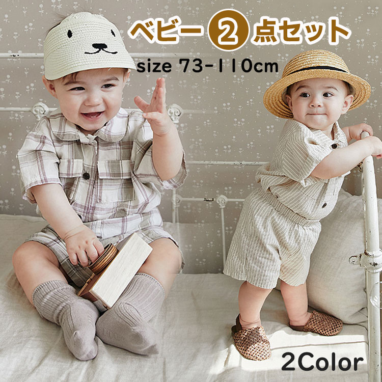 ベビースーツ 2点セット 夏 赤ちゃん セットアップ 男の子 半袖 シャツ ショートパンツ チェック柄 ストライプ柄 上下セット お洒落 かわいい カッコイイ カジュアル 73 80 90 100 1