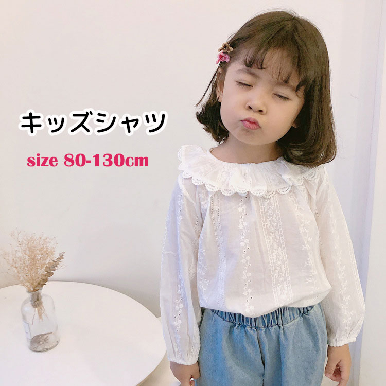 子供服 フリル付き 丸襟 ブラウス 女の子 シャツ ベビー 赤ちゃん 可愛い 長袖 春 薄手 キッズ 綿 ジュニア 学生 トップス ベーシック シンプル お出かけ 保育園 通園 通学 入園式 卒園式