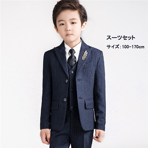 子供スーツ 入園式3 4 5点セット ジャケット ベスト ズボン ネクタイ シャツ 男の子スーツ キッズ フォーマル 結婚式 発表会 七五三 入学式 卒業式 100cm 110cm 120cm 130
