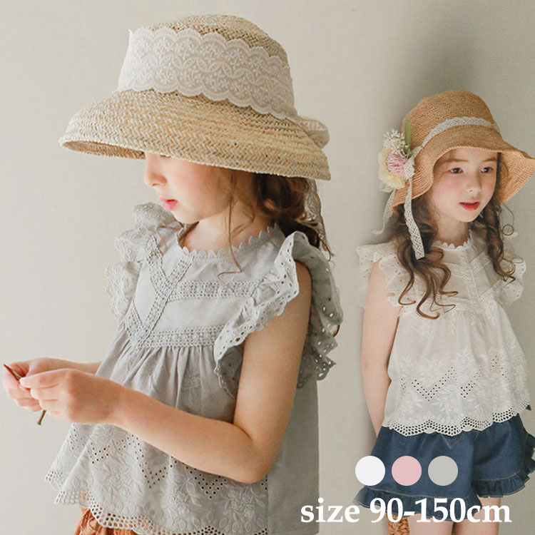 夏女の子用ノースリーブブラウス、肩フリル付きめちゃくちゃかわいいキッズ ベビー マタニティ キッズファッション トップス シャツ ブラウス