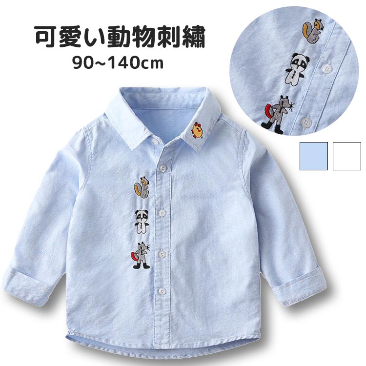 シャツ キッズ ベビー 動物柄 男の子 子供服 パンダ キツネ リス ブタ 綿 コットン 小学生 幼稚園 可愛い おしゃれ 格好いい 重ね着 長袖 春 秋 カジュアル ジュニア 通園 通学 コーデ 動