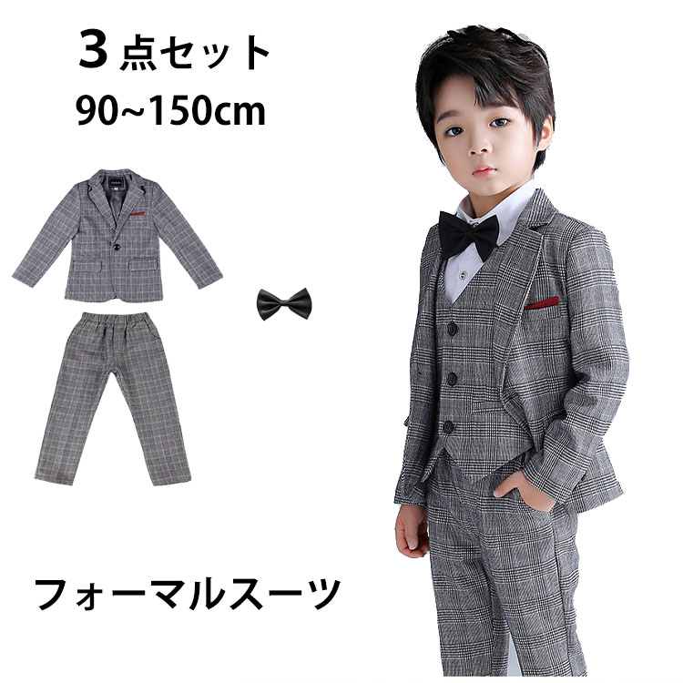キッズ フォーマルスーツ 男の子 チェック 小学生 入学式 子供服 お受験 発表会 結婚式 七五三 おしゃれ タキシード キッズ 3点セット フォーマル 長袖 ジャケット 蝶ネクタイ パンツ ズボン