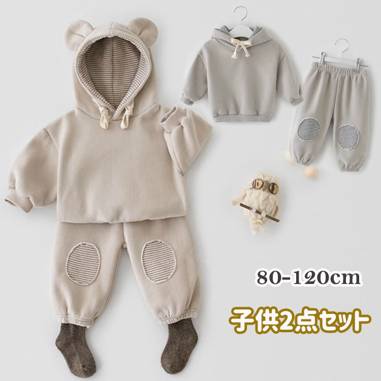 春秋 子供服 セットアップ 2点セット ベビー服 男の子 女の子 スウェット 2色 カジュアル くまみみ トップス パンツ 赤ちゃん 上下セット ベビー キッズ 可愛い 長袖 お洒落 お誕生日 プレゼ