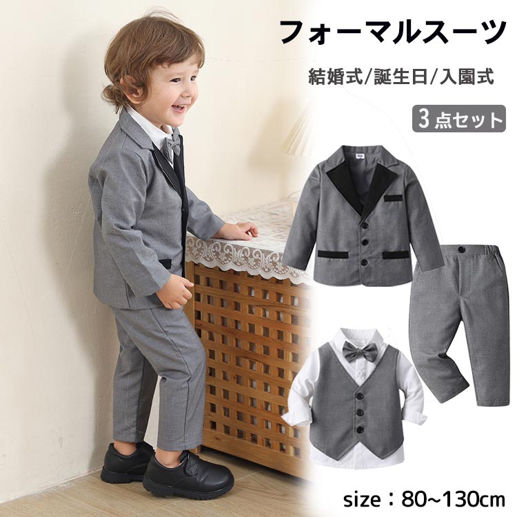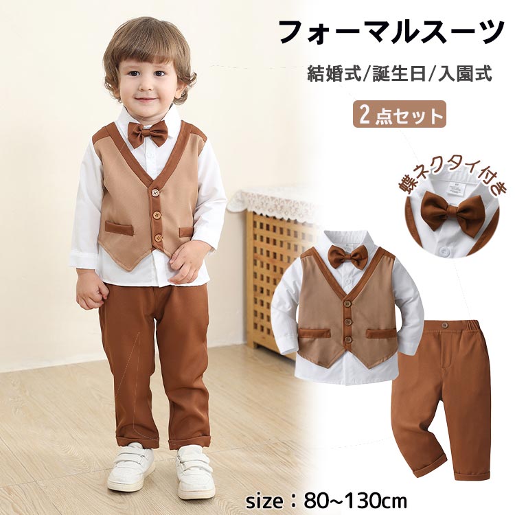 綿生地 子供服 フォーマル 2点セット 蝶ネクタイ付き 80 90 100 110 120 130 お宮参り 英国風 記念日 誕生日