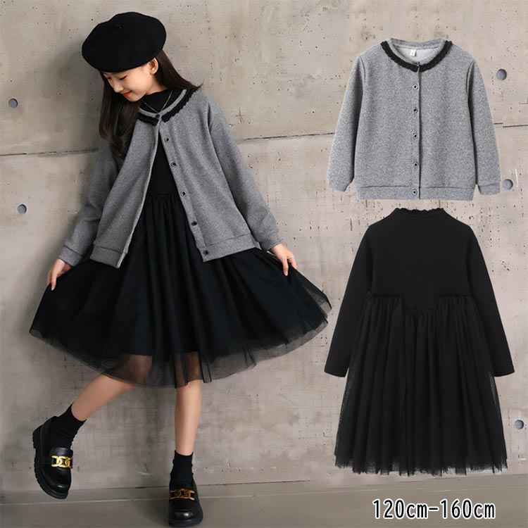 カーディガン ワンピース 2点セット 女の子 フォーマル 長袖 七五三 冠婚葬祭 お法事 葬儀 発表会 入学式 卒業式 普段着 通学 通園