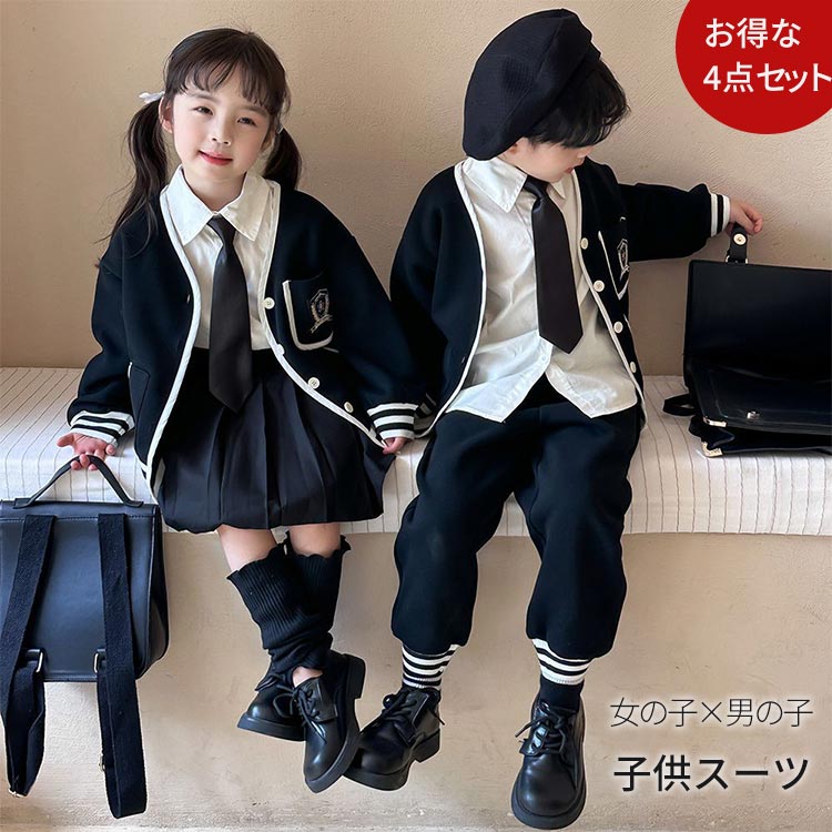 4点セット 女の子 男の子 90 100 110 120 130 140 150cmキッズ ベビー マタニティ キッズファッション スーツ カジュアルセットアップ スーツ