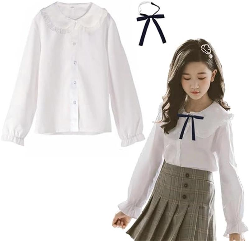 子供服 女の子 シャツ フォーマル ブラウス 子供 白ブラウス キッズ ワイシャツ リボン付 フリル 長袖 入学式 発表会 卒業式 結婚式 受験 女の子 ブラウス