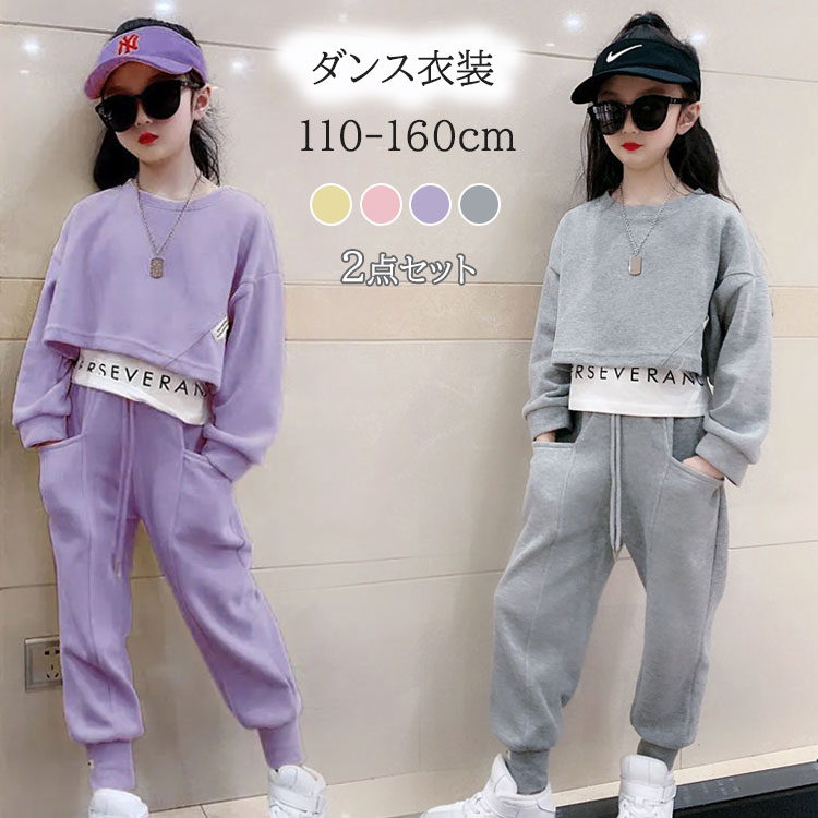 子供服 ダンス衣装 2点セット セットアップ ヒップホップ ダンスウェア カジュアル トップス パンツ 女の子 上下セット 子供 キッズ 可愛い 長袖 お洒落 舞台衣装 ダンス発表会 練習着 ファッシ
