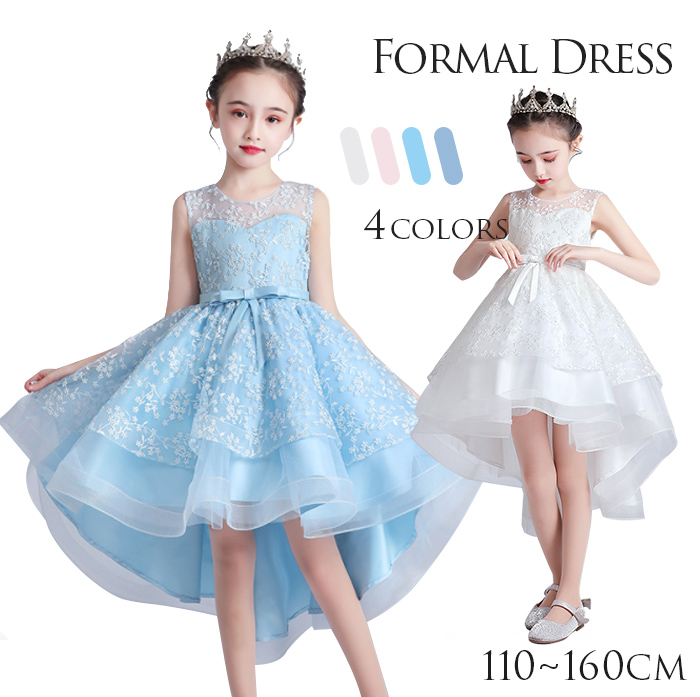 コンクール ドレス こどもドレス 立体的な細かな刺繍が袖まで施されていてとても上品な印象 フォーマルドレス お返し 人気