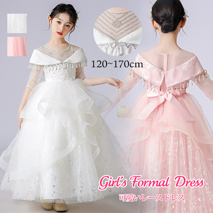 プリンセスドレス 結婚式 キッズ ドレス ワンピース 子供服 子供用 春 秋物 長袖 膝丈 ホワイト エレガント きれいめ キッズドレス