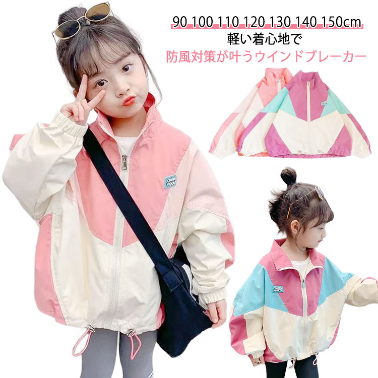 キッズ ウィンドブレーカー ブルゾン フードなし ジャケット ジャンパー 子ども 女の子 キッズアウター 90 100 110 120 130 140 150 スプリングコート 春 秋 冬 服