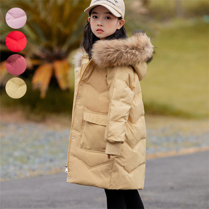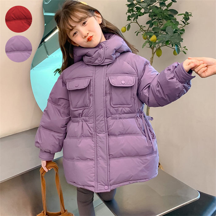 ダウンコート ダウンジャケット キッズ ロング丈 女の子 フード付き ジュニア 通学 お出かけ 普段着 120cm 130cm 140cm 150cm 160cm