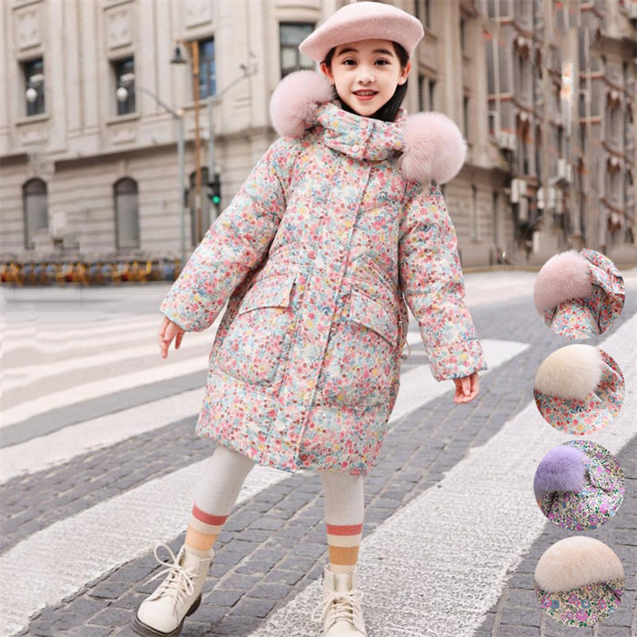 ダウンコート キッズ 女の子 ダウンジャケット アウター 花柄 総柄 お出かけ 普段着 120cm 130cm 140cm 150cm 160cm