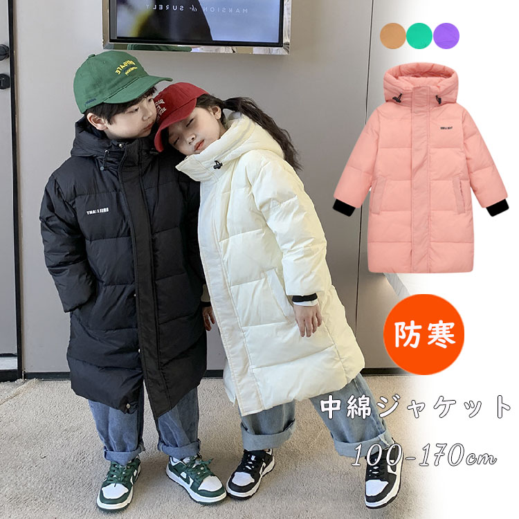 ベンチコート ジュニア 女の子 キッズ 中綿ジャケット 150 風パーカー アウター 白 コート 秋冬 子供服 キッズ 暖かい 男の子 こども服 冬服 上着 あったか 防寒 シンプル カジュアル