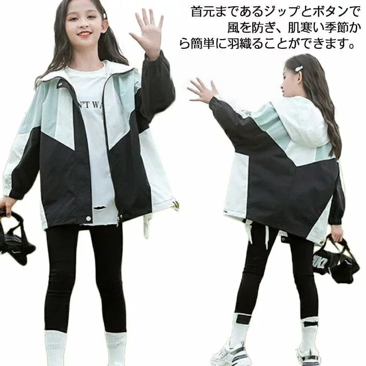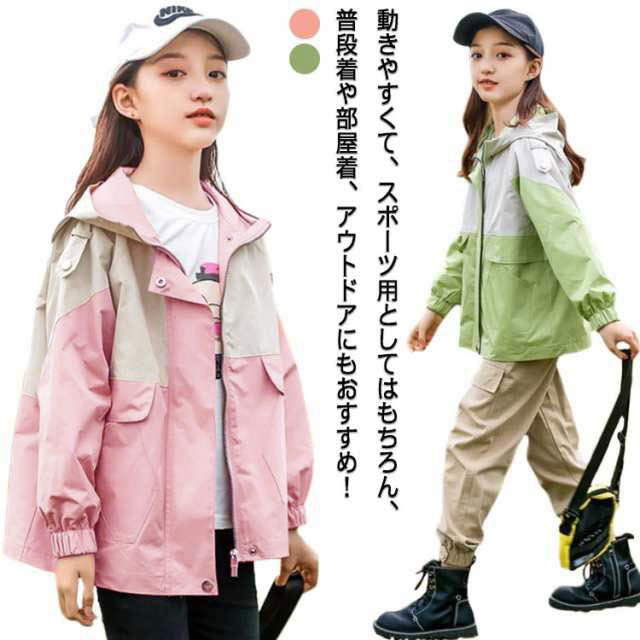 スプリングコート 女の子 薄手 マウンテンパーカー キッズ ジャケット ジャンパー ウインドブレーカー ジャージ 切り替え 春 アウター フード付き 長袖 子供服 秋 秋服 かわいい 150 160