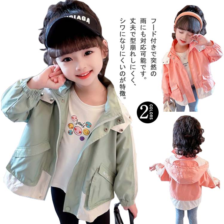 スプリングコート 女の子 薄手 マウンテンパーカー キッズ ジャケット ジャンパー ウインドブレーカー ジャージ 切り替え 春 アウター フード付き 長袖 子供服 秋 秋服 かわいい 120 130