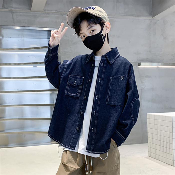 韓国子供服 キッズ デニムコート 男の子 春秋 シャツジャケット 子供服 コート デニムジャケット チェック スタジャン 大きいサイズ 通園 通学 小学生 中学生 140 150 160