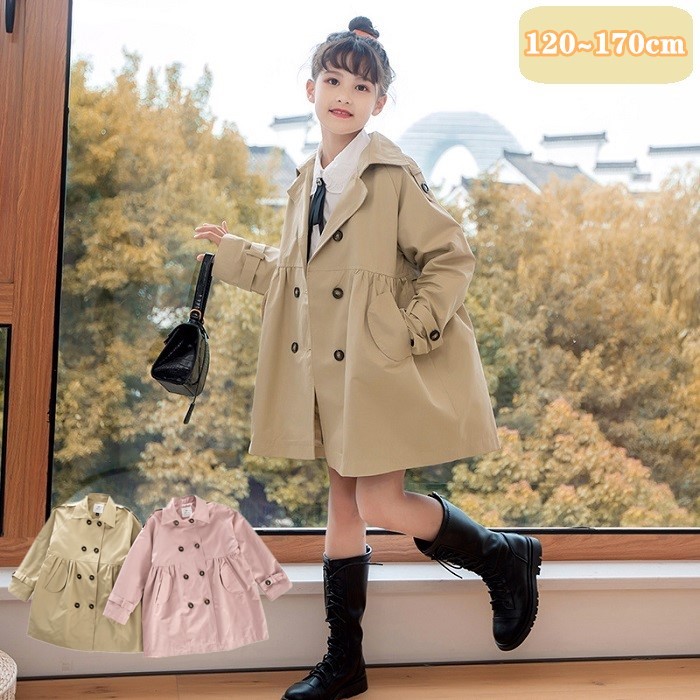 トレンチコート キッズ 女の子 春秋 親子 子供服 アウター コート 大きいサイズ 通園 通学 ロングコート 150 160
