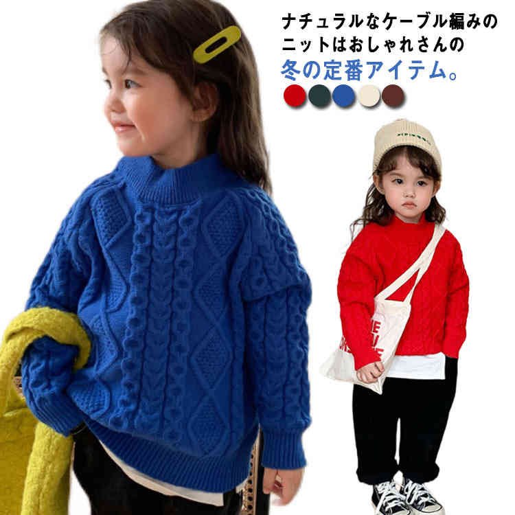 セーター ケーブル編み ニット ケーブル 無地 タートルネック 子供服 ハイネック 長袖ニット ざっくり編みケーブルニット キッズ 暖かい プルオーバー