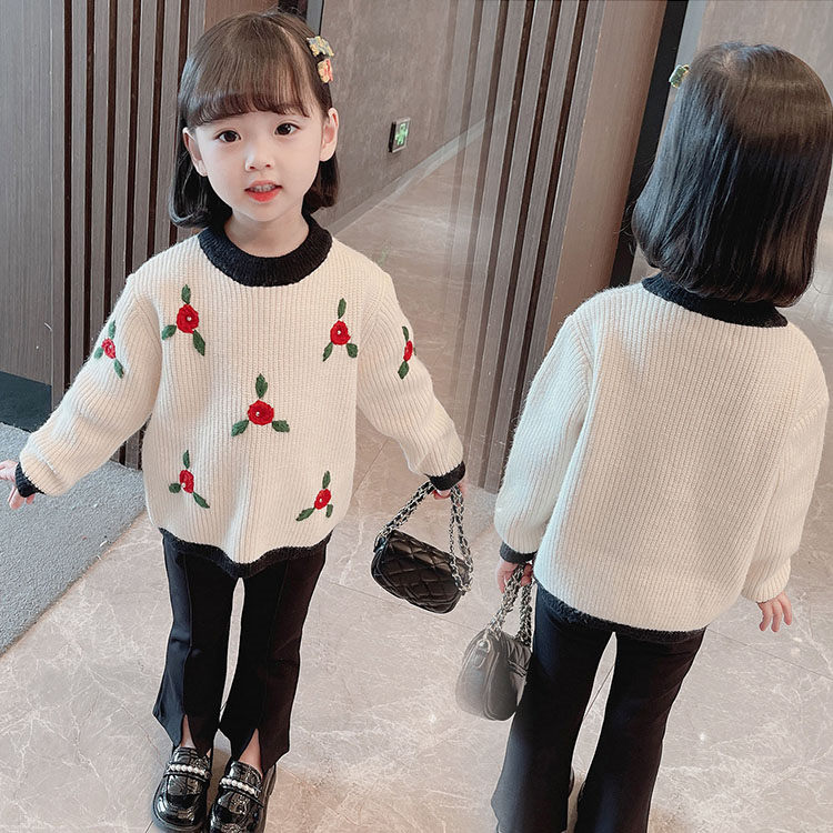 セーター キッズ 春秋 長袖 子供用 ニット 女の子 ファッション きれいめ お嬢様風 結婚式 おしゃれ 女児 可愛い お出かけ パーティー 学生 花柄 90-130 -1061