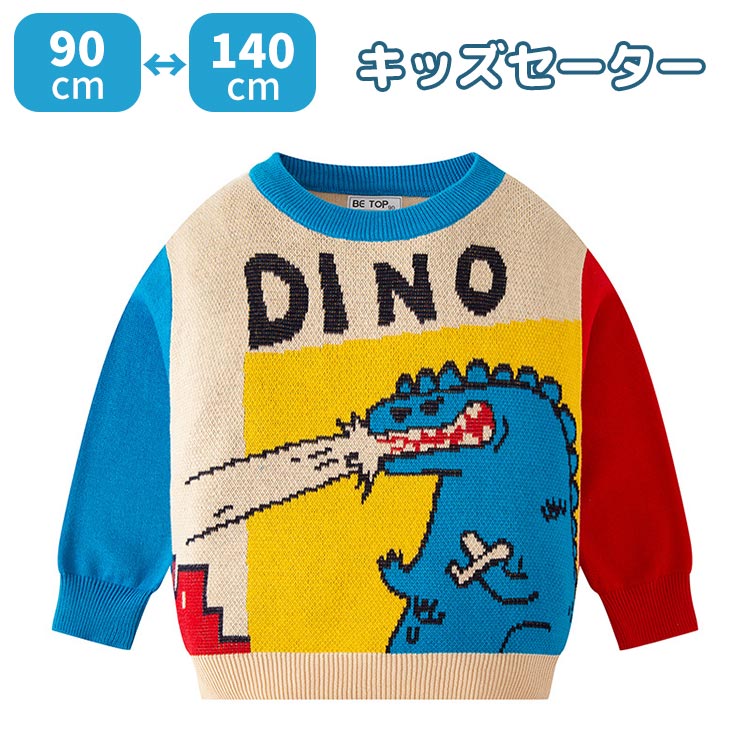 ニット セーター キッズ こども トップス 春 秋 子供 男の子 長袖 薄手 恐竜 ダイナソー 怪獣 コットン 綿100% 柔らかい 通気 コットンニット おしゃれ かっこういい 個性デザイン 90