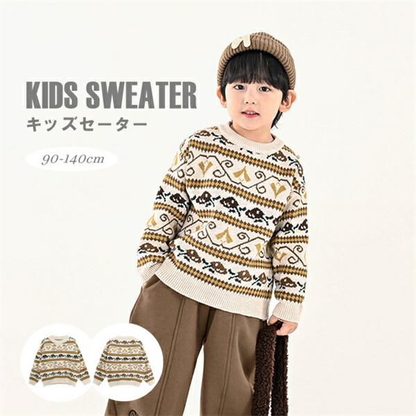 子供セーター キッズウエア キッズセーター 子供服 セーター 子供ウエア 長袖 冬 キッズ 子供 トップス ベージュ 元気 シンプル
