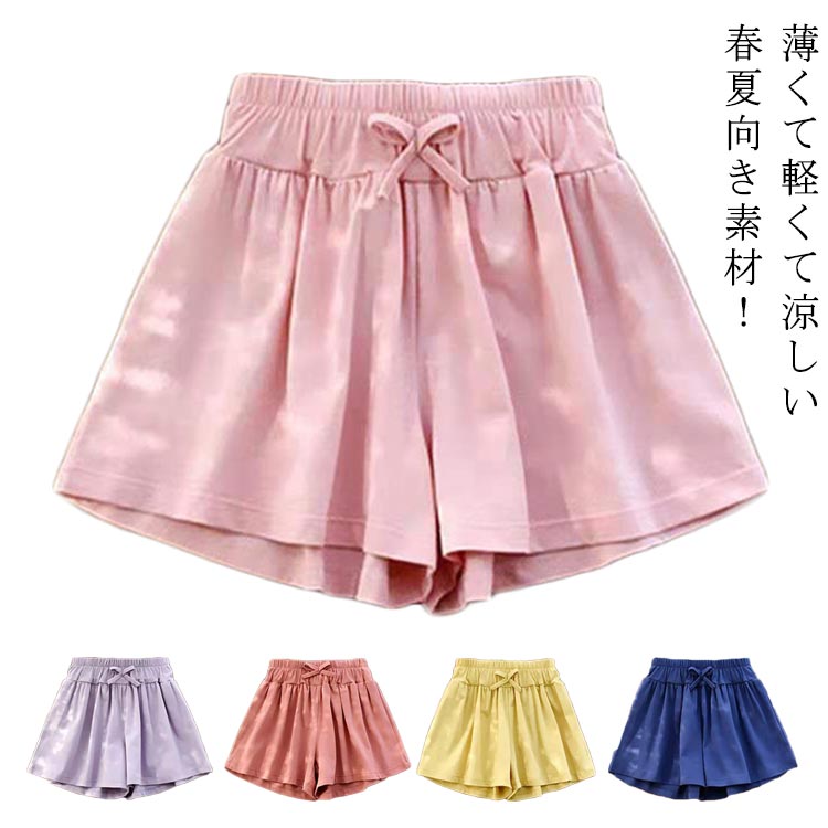 女の子 ジュニア 夏 キッズ キュロットパンツ 子供服 100 ウエストゴム 無地 リボン ガールズ 160 カジュアル ナチュラル 通園 通学 ショートパンツ 110 120 130 140 150