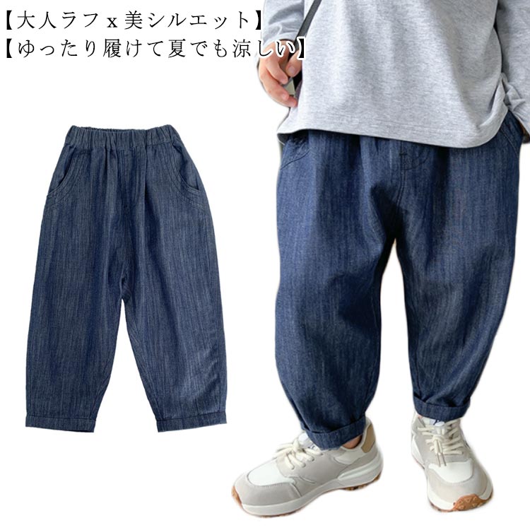 男の子 長パンツ テーパードイージーパンツ 子供 シンプル リラックスパンツ こども キッズ デニム 長ズボン おしゃれ ゆったり 薄手 女の子 無地 90cm 100cm 110cm 120cm 1
