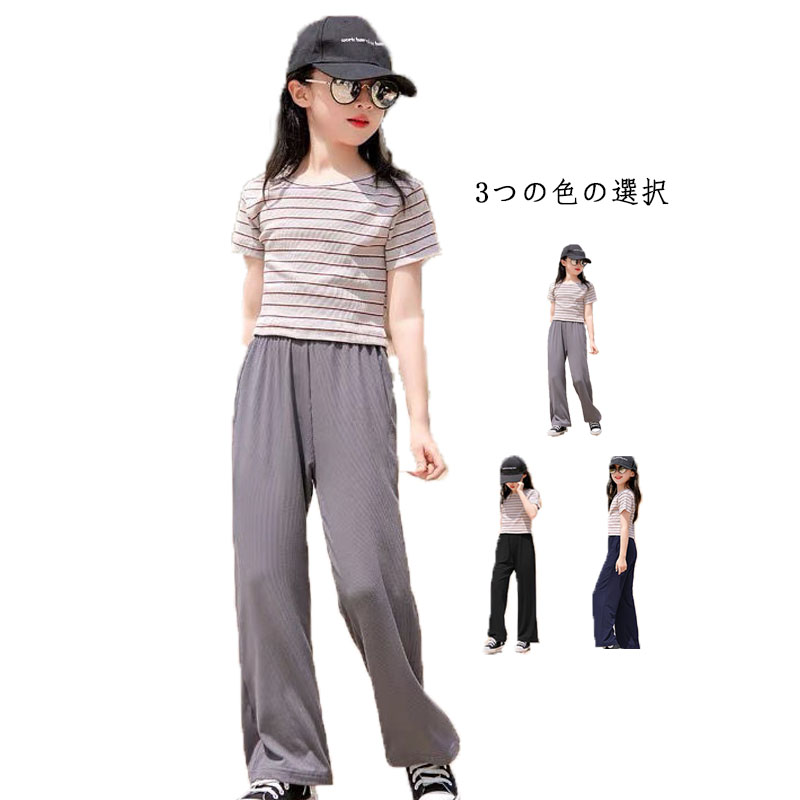 ボーダーパンツ カジュアルパンツ ワイドパンツ ガウチョパンツ ロングパンツ ボーダー柄 子供服キッズ ベビー マタニティ キッズファッション パンツ