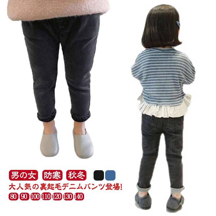 デニムパンツ キッズ 裏起毛 パンツ テーパードパンツ ジーンズ ジーパン ベビー服 レギンス 長ズボン 女の子 男の子 子ども 裏ボア 子供服 防寒 秋冬 カジュアル かわいい 80 90 100