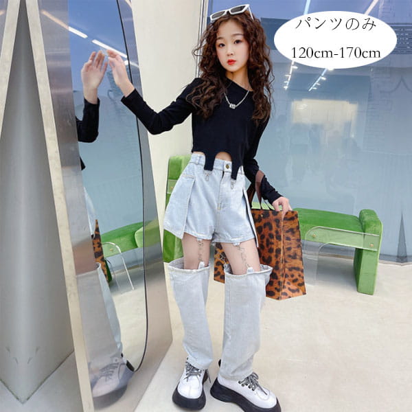 韓国子供服 デニムパンツ お洒落 新作 ファッション デニムパンツ 女の子 ジーンズ キッズ ダンス 衣装 パンツ ボトムス ロングパンツ ファッション 舞台 HIPHOP ジャズ 団体服 デニムパン