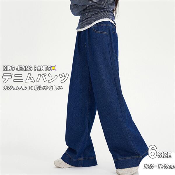 ジーンズ 子供服 キッズジーパン デニム パンツ ボトムス ロングパンツ ブルー おしゃれ デニムパンツ ワイドパンツ 綿 長ズボン