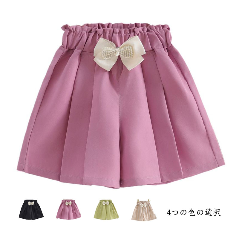 キッズ サマーショートパンツ ハーフパンツ ミニパンツ おしゃれパンツ フレアパンツ リボン おしゃれ ショート丈