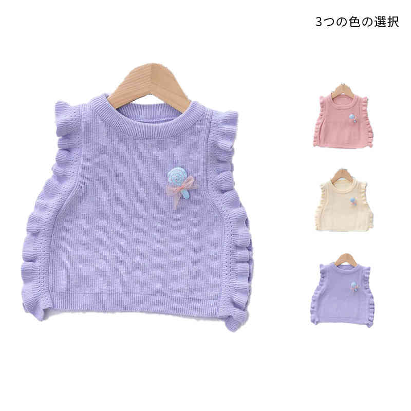 フリルベスト ケープルニット ノースリーブ 重ね着 かわいい 子供服 ベスト トップス お洒落キッズ ベビー マタニティ キッズファッション トップス ベスト ジレ
