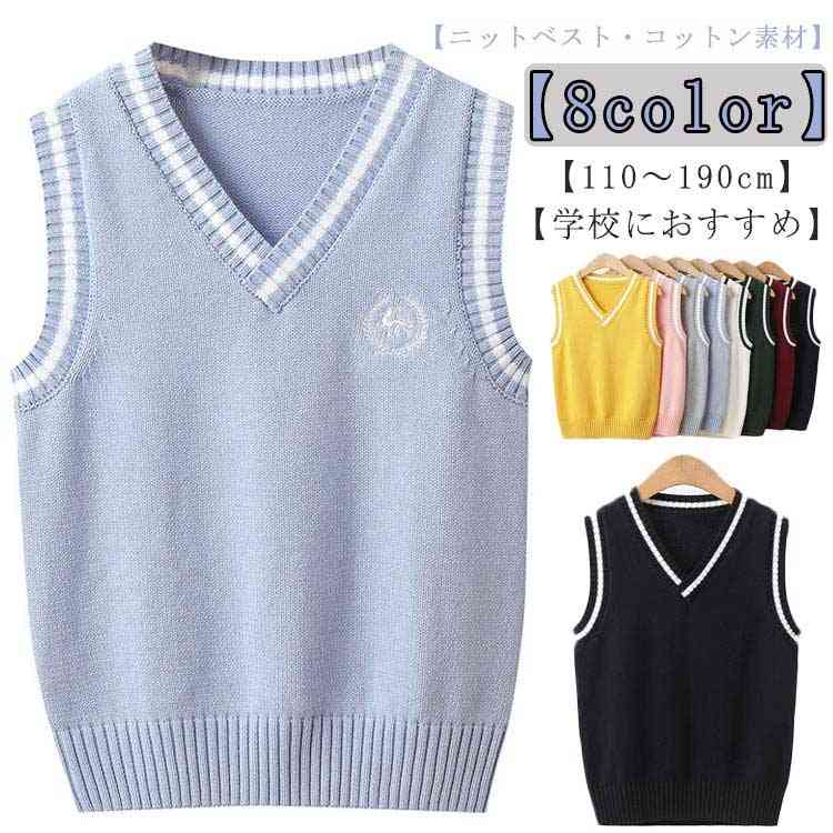 キッズ服 スクール ベスト スクールベスト プルオーバー シンプル かわいい 子供服 綿 コットン ノースリーブ 子ども こども 可愛い