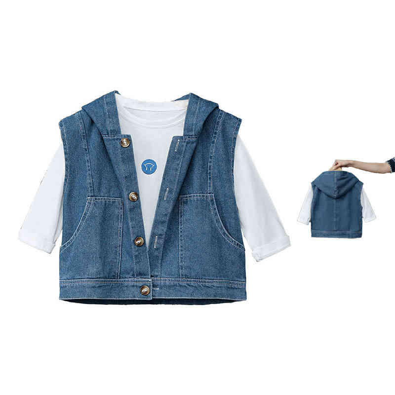 カジュアルベスト 春秋 デニムベスト 子供ベスト ノースリーブ 子供ベスト フード付きデニムベストキッズ ベビー マタニティ キッズファッション トップス ベスト ジレ