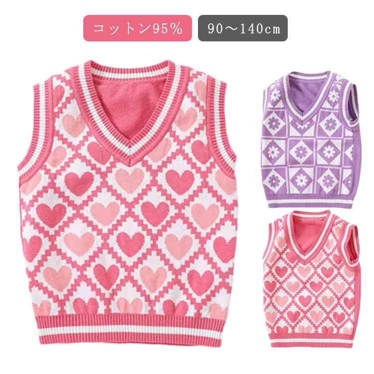 トップス ジュニア 女の子 ニット ニットセーター 袖なし 冬 レイヤード ハート柄かわいい キッズ ベスト 春 秋 ノースリーブ