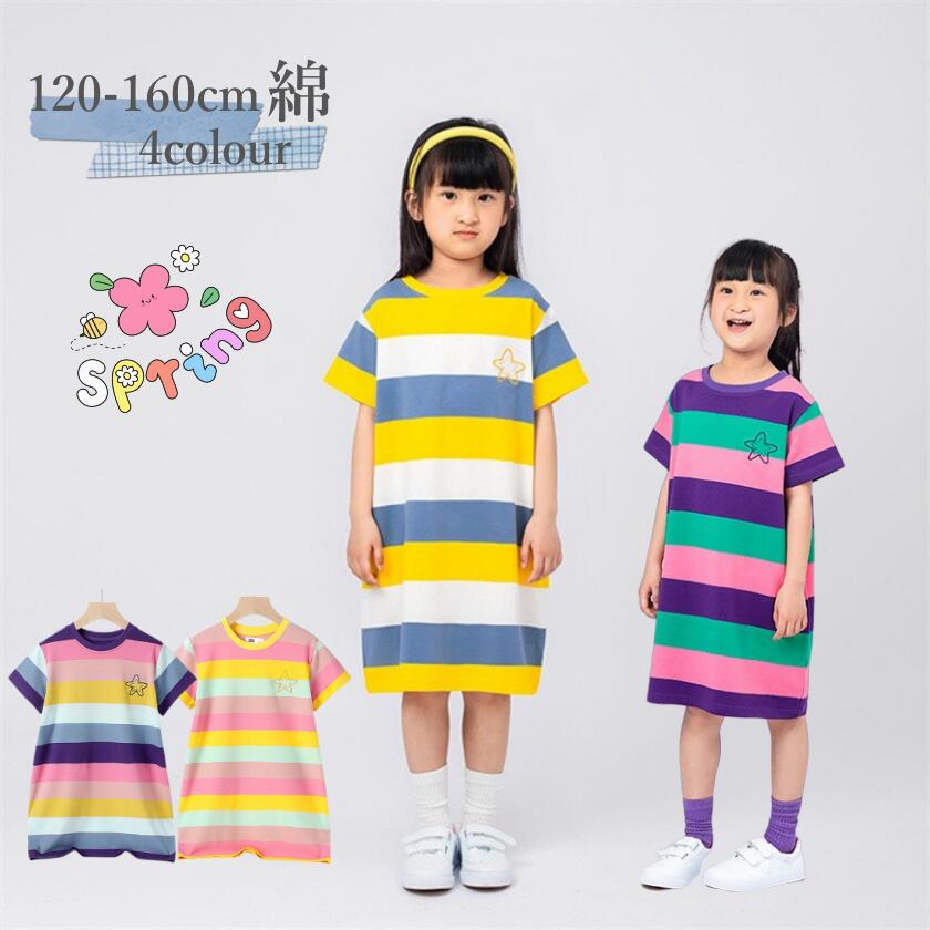 韓国子供服 子供ワンピース 夏 半袖 綿 tシャツワンピース 子供服 女の子ワンピース キッズ ワンピース 中学校 小学校 通学 通園 140cm 150cm 160cm
