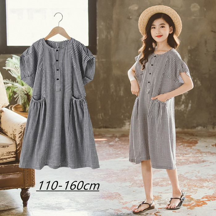 韓国子供服 子供ワンピース 夏 半袖 綿 シャツワンピース 子供服 女の子ワンピース キッズ ワンピース 中学校 小学校 通学 通園 140 150 160
