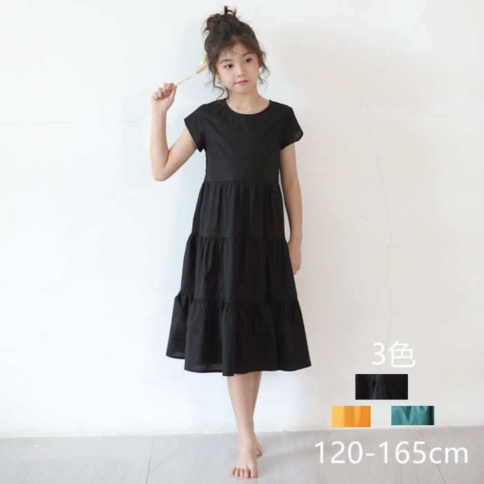 韓国子供服 子供ワンピース 夏 綿 黒 子供服 女の子ワンピース キッズ ワンピース 幼稚園 中学校 小学校 通学 通園 140cm 150cm 160cm