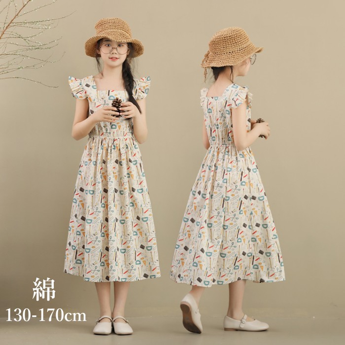 韓国子供服 子供ワンピース 夏 綿 親子 子供服 女の子ワンピース キッズ ワンピース 中学校 小学校 通学 140cm 150cm 160cm